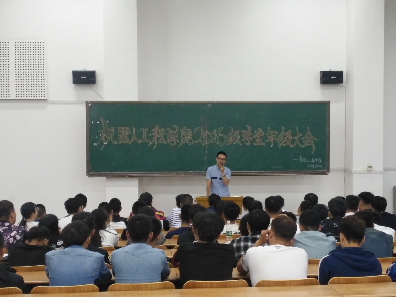 为强化员工日常管理,增强班级的凝聚力。学院于5月31日晚在教二102召开2016级员工年级大会。学院2016级全体员工参会,会议由2016级辅导员苏军老师主持。